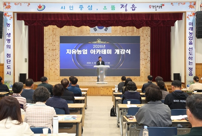[정읍=뉴전북] 정읍시가 지역 농촌의 새로운 소득원으로 떠오르는 치유농업 전문 인력을 육성하기 위해 지난 25일 ‘2026년 치유농업 아카데미’ 개강식을 열고 본격적인 교육에 돌입했다.