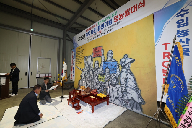 무주군 농민회가 주관한 가운데 무풍면 산지유통센터에서 열린 이날 행사는 풍물 공연을 시작으로 개회식과 영농 발대 선언, 풍년기원제 순으로 진행됐다.