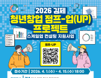 [김제=뉴전북]김제시는 청년 창업기업의 경쟁력 강화를 위해 창업청년 스케일업 컨설팅 지원사업 「청년창업 점프-업(UP) 프로젝트」를 본격 추진한다고 밝혔다. 이번 사업은 시의 핵심 청년 지원정책인 「김제 희망로드 프로젝트」의 일환으로, 창업기업의 현황을 진단하고 그 결과를 기반으로 부족한 부분을 전문가와 매칭해 컨설팅을 제...