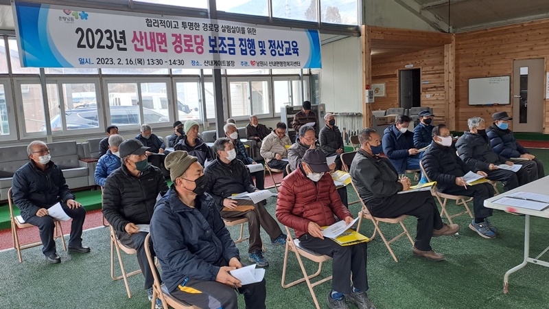 [남원=뉴전북] 남원시 산내면행정복지센터에서는 216일 산내 게이트볼장에서 관내 16개 경로당 노인회장 및 총무 32명을 대상으로 2023년 경로당 보조금 집행 및 정산교육을 실시했다.