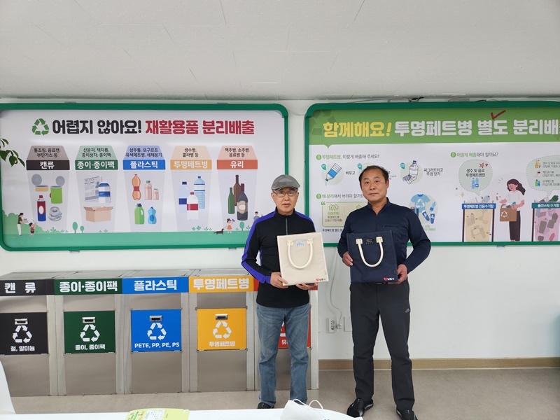 재활용품 교환사업은 폐건전지, 종이팩, 아이스팩을 가져오면 교환기준에 따라 종량제봉투(20) 또는 친환경 화장지로 교환해주는 사업으로 폐건전지는 240g당 종량제봉투 1, 종이팩은 15(1리터 우유팩 기준) 화장지 1, 아이스팩은 5개당 종량제 1장과 교환 가능하다.