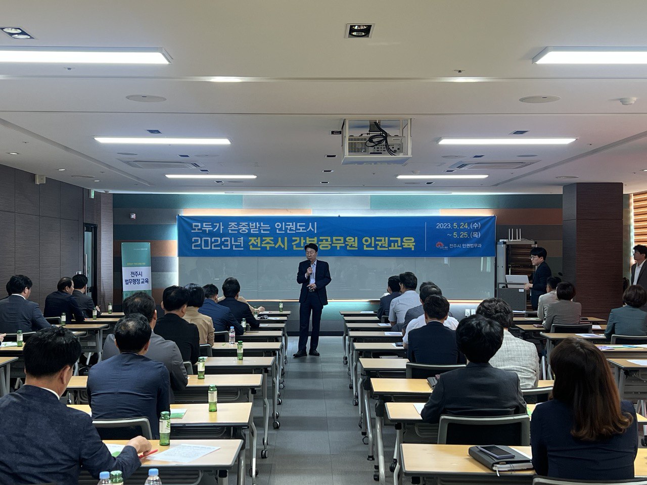 [전주=뉴전북] 전주시는 24일과 25일 이틀간 총 3회에 걸쳐 우범기 전주시장과 김인태 부시장 등 5급 이상 간부 공무원 163명을 대상으로 맞춤형 인권교육을 진행했다.