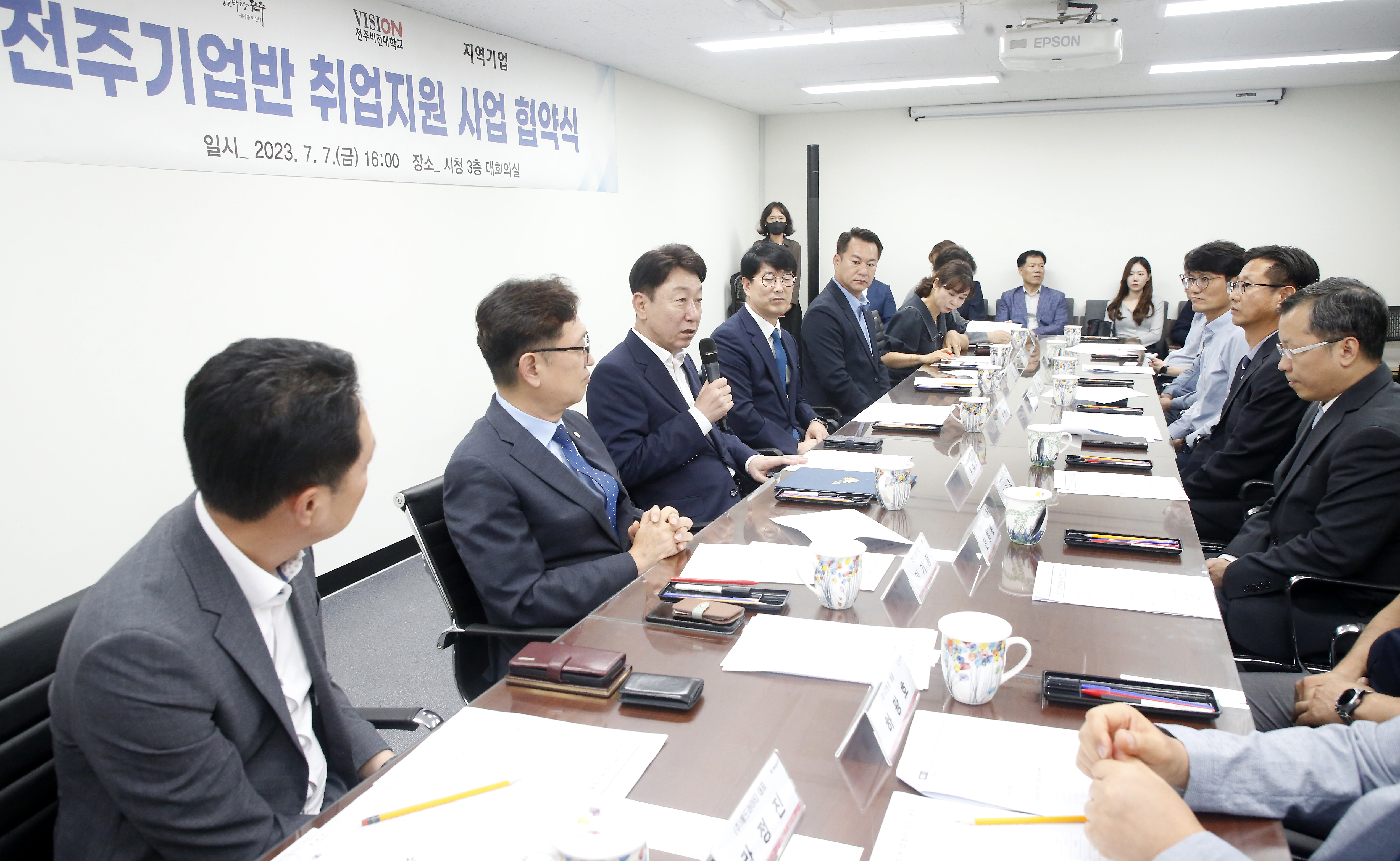 시와 전주비전대학교, 자동차생산·ICT 관련 13개 기업은 7일 전주시청 3층 대회의실에서 우범기 전주시장과 우병훈 전주비전대 총장업무대행, 13개 기업 대표 등이 참석한 가운데 기업수요 맞춤형 인재 양성과 일자리 창출을 위한 ‘전주기업반 취업지원사업 업무협약’을 체결했다.