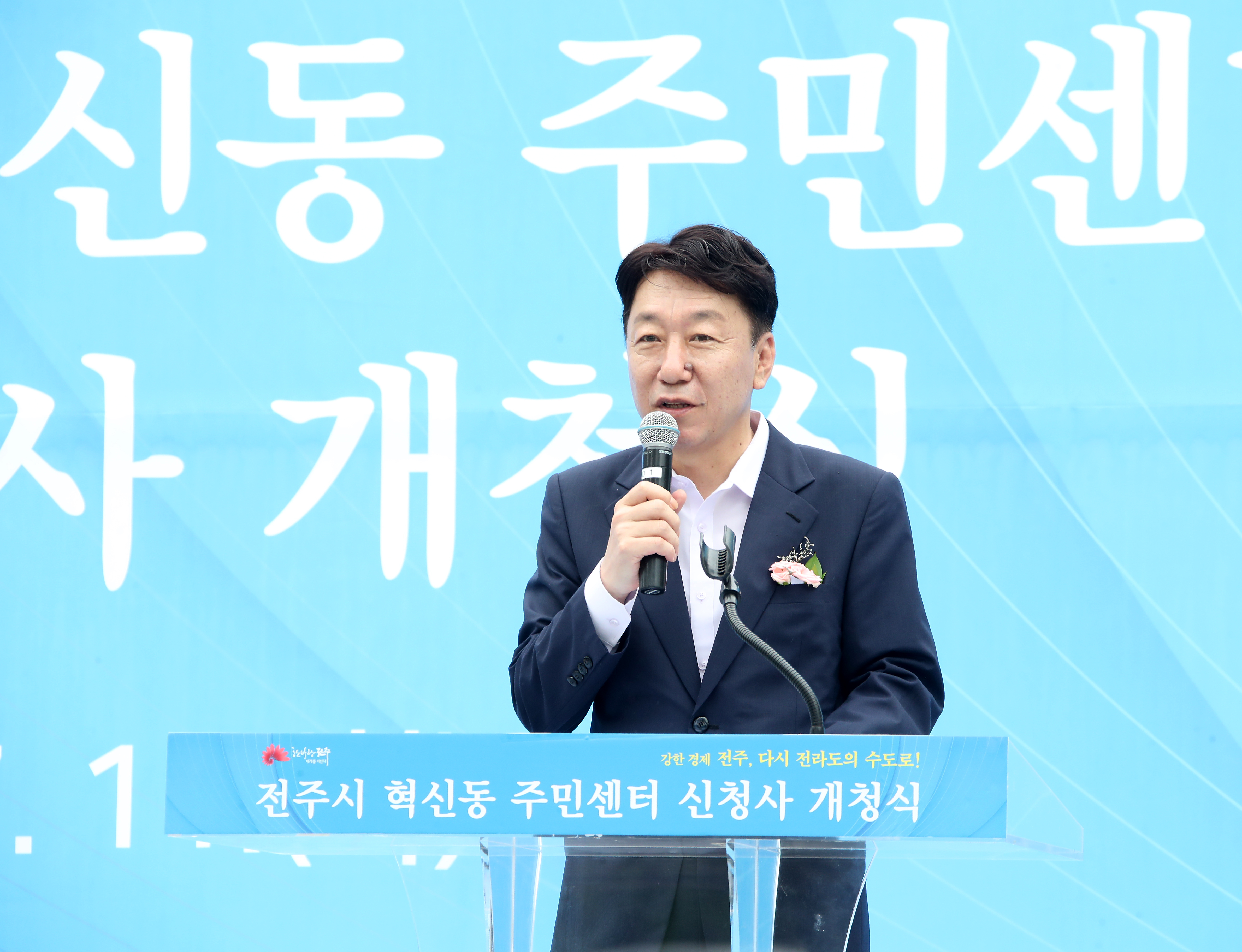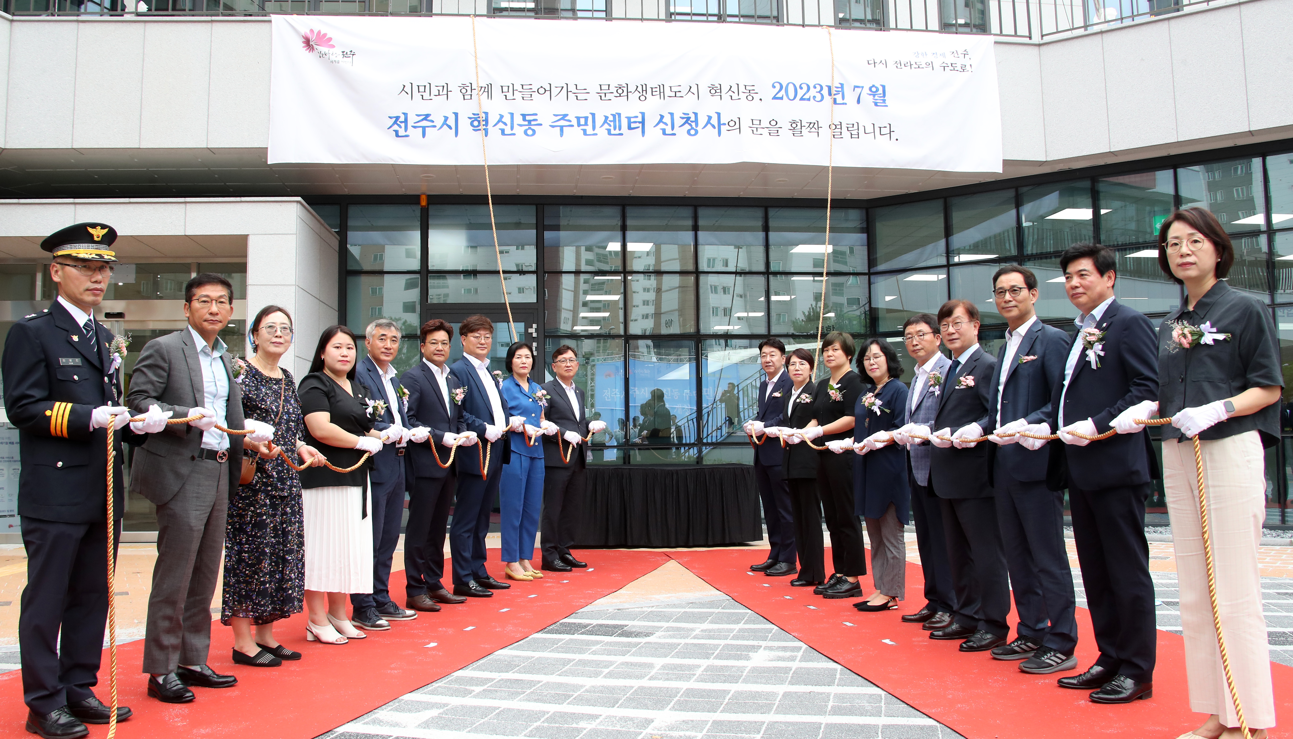 전주시는 11일 혁신동주민센터 신청사에서 우범기 전주시장과 이기동 전주시의회 의장, 지역 정치권, 혁신도시 공공기관장, 유관 기관·단체 대표, 지역주민 등 200여 명이 참석한 가운데 ‘혁신동주민센터 여는 날(개청식)’ 행사를 가졌다.
