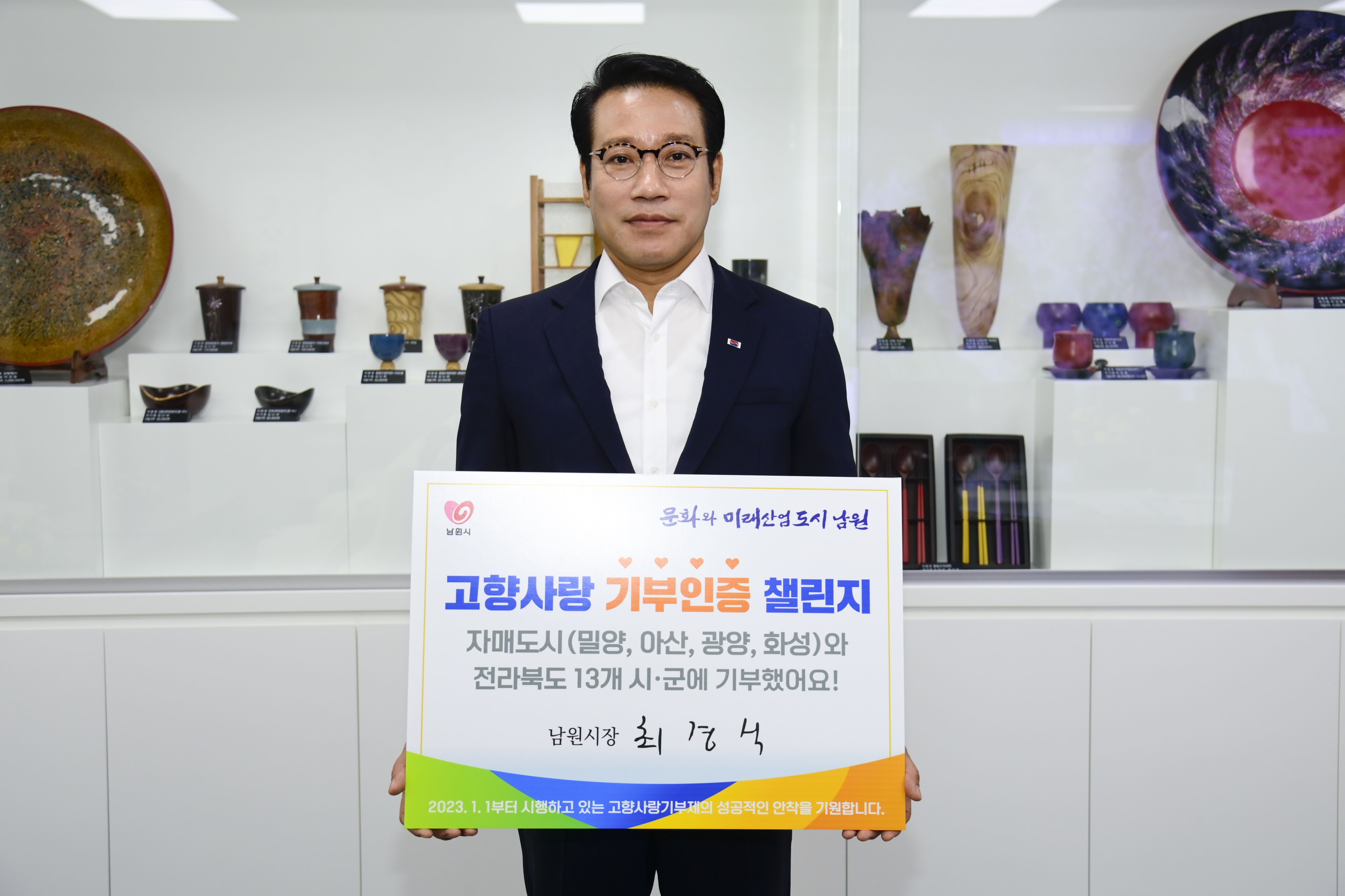 최경식 남원시장은 최영일 순창군수의 지목을 받아 챌린지에 참여하게 되었으나, 최 시장은 기부제 시행 후 선도적으로 1월 도내 13개 시‧군과 우리 시 자매도시(경남 밀양시, 충남 아산시 전남 광양시, 경기 화성시)에 기부금을 기탁하였으며, 이번 행사는 실제 기탁 대신 기부 인증 릴레이 참여를 하고 다음 인증 챌린지 주자로 남원시 자매도시인 정인화 광양시장을 지목했다.