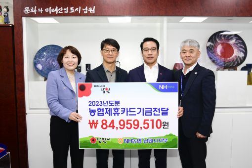 이날 전달된 적립금은 남원시와 농협 제휴카드사 간의 협약을 체결해 발급한 복지포인트 카드, 법인카드, 보조금 카드 사용금액의 0.1 ~ 1%를 포인트로 적립한 것이다. NH농협 남원시지부는 2006년부터 현재까지 총 18회에 걸쳐 8억 1,600만원을 남원시에 전달해 왔다.