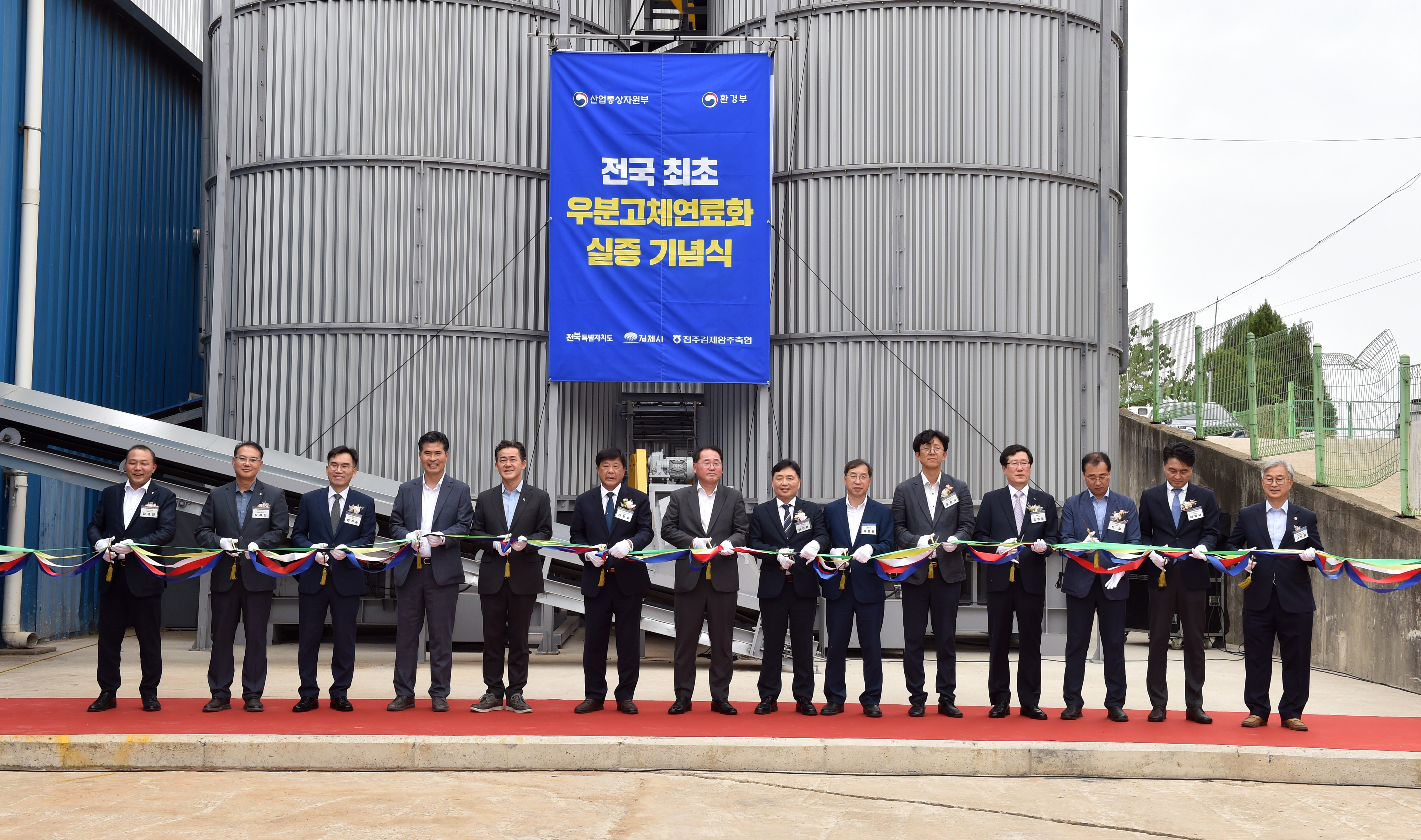 • - 우분 고체연료의 이용 확대를 위한 상호 협력기관과 함께 전국 최초 우분 고체연료화 실증 기념식을 개최 - 1일 170톤의 우분을 활용해 새만금 수질개선과 1일 43톤의 고체연료 생산이 가능