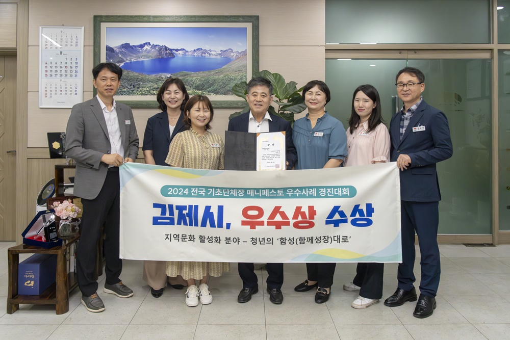 [김제=뉴전북] 김제시(시장 정성주)가 2024 전국 기초단체장 매니페스토 우수사례 경진대회」 지역문화 활성화 분야에서 우수상을 수상했다.