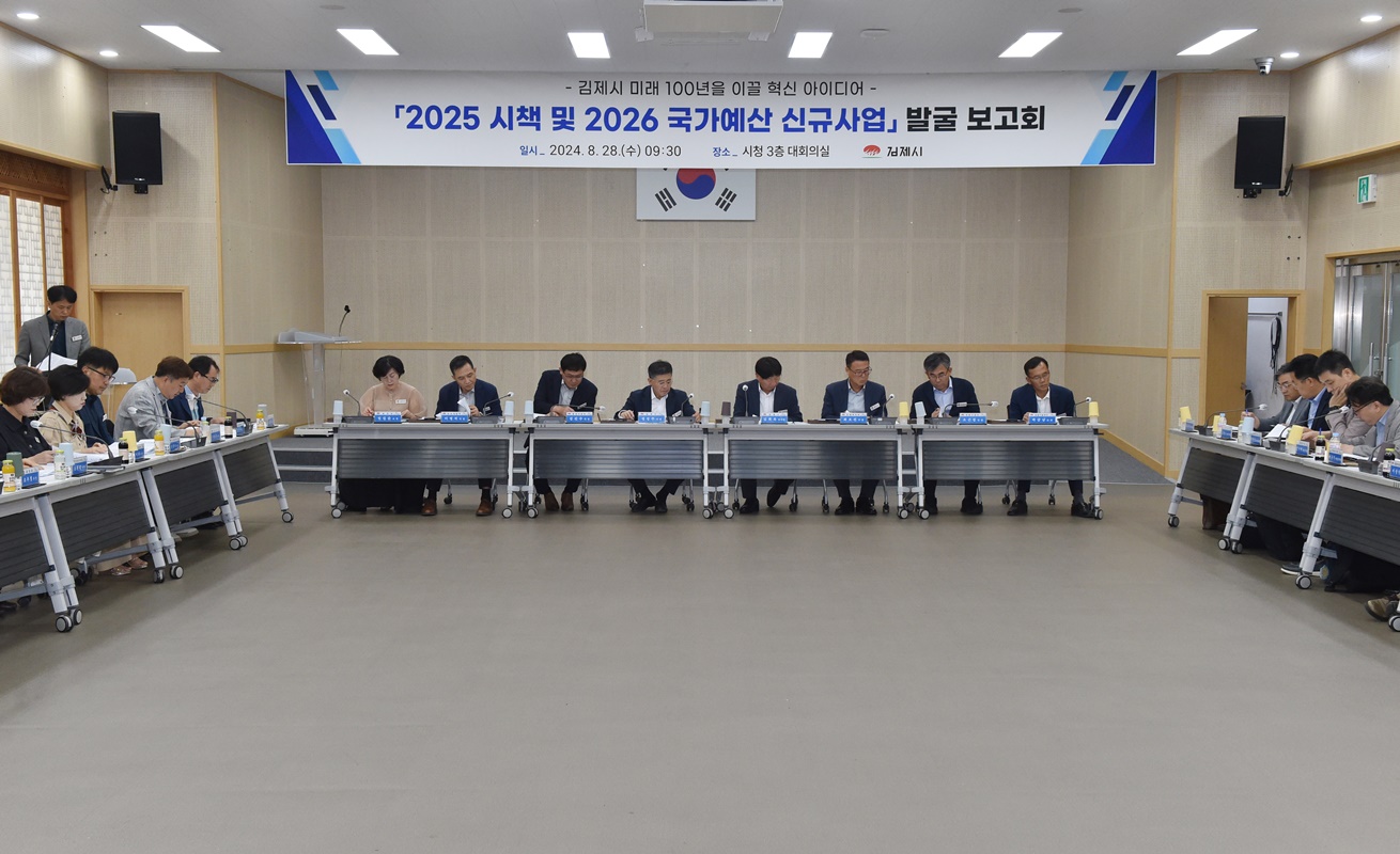 • - 김제시, 2025 시책 및 2026 국가예산 신규사업 발굴 보고회 개최 - 전북연구원 전문가 5명이 참석해 사업의 타당성, 실현가능성, 필요성 등을 사업에 대한 논리를 보완하고 앞으로의 추진 방향에 …