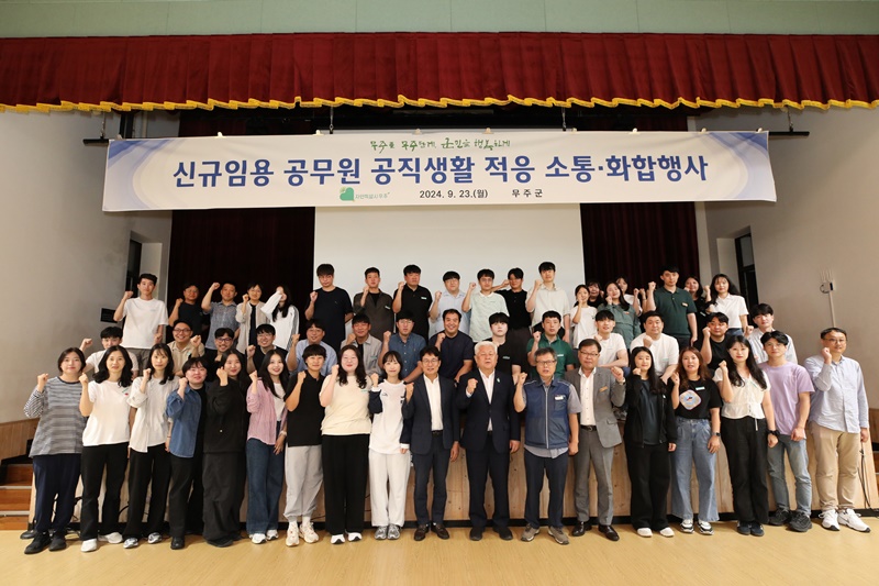 한편, 이 자리에서 ‘주민이 만족하는 행정서비스‘ 실현과 이를 주도하는 공직자상을 강조한 황인홍 무주군수는 “공직에 첫발을 내딛는 신규공무원들이 따듯한 공직 문화 속에서 보다 빠르고 안정적으로 적응해 나갈 수 있도록 뒷받침할 것”이라며 “이들이 무주군에서 일하며 공직자로서 성취감을 높이고 지역발전과 주민 행복을 위한 동력으로 성장해 갈 것을 믿는다”라고 밝혔다.