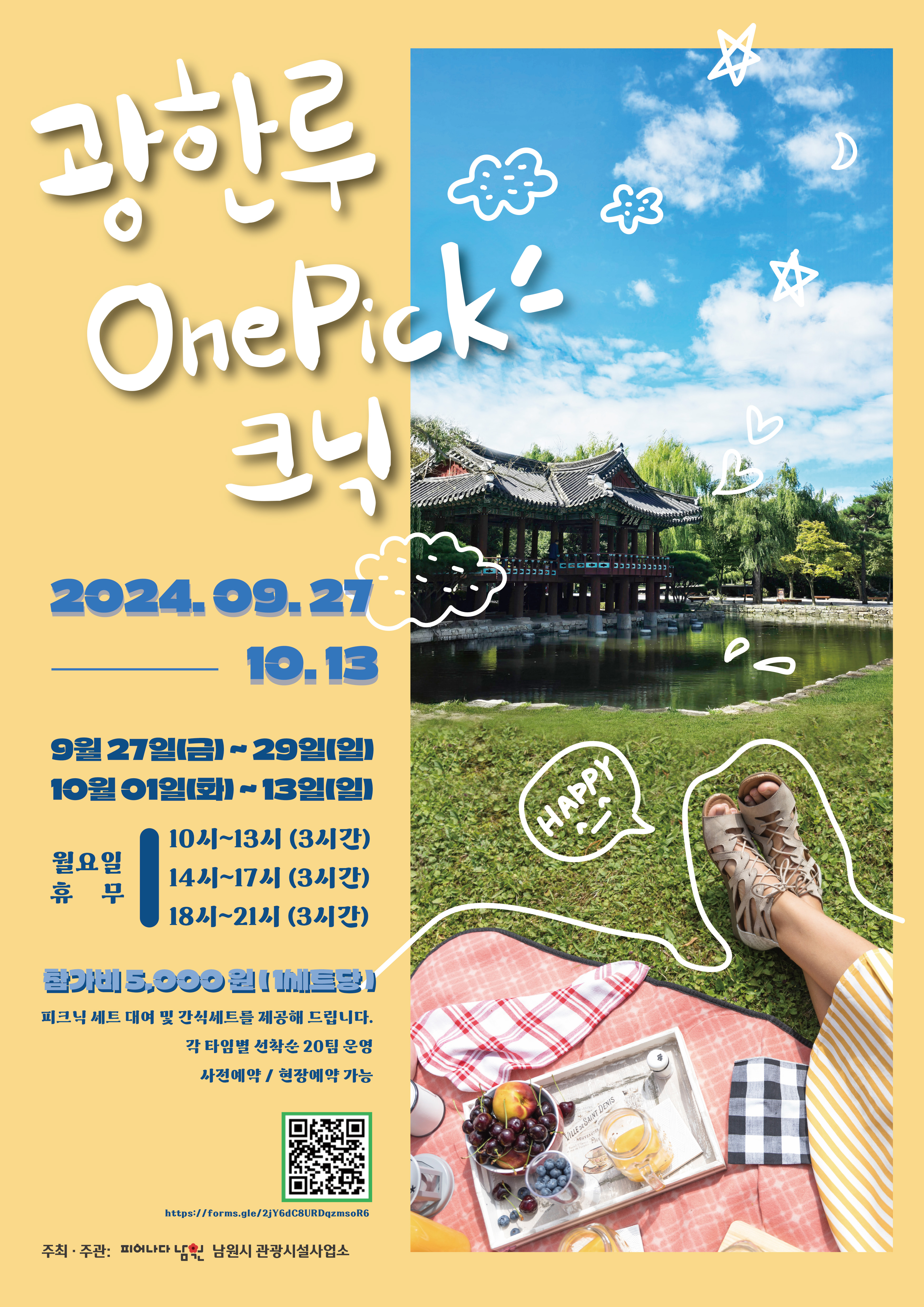 • - ‘광한루One Pick크닉존’ 운영 - 남원시의 가을 관광자원을 적극적으로 홍보하며, 광한루원을 찾는 관광객들에게 특별한 추억을 선사할 것으로 기대