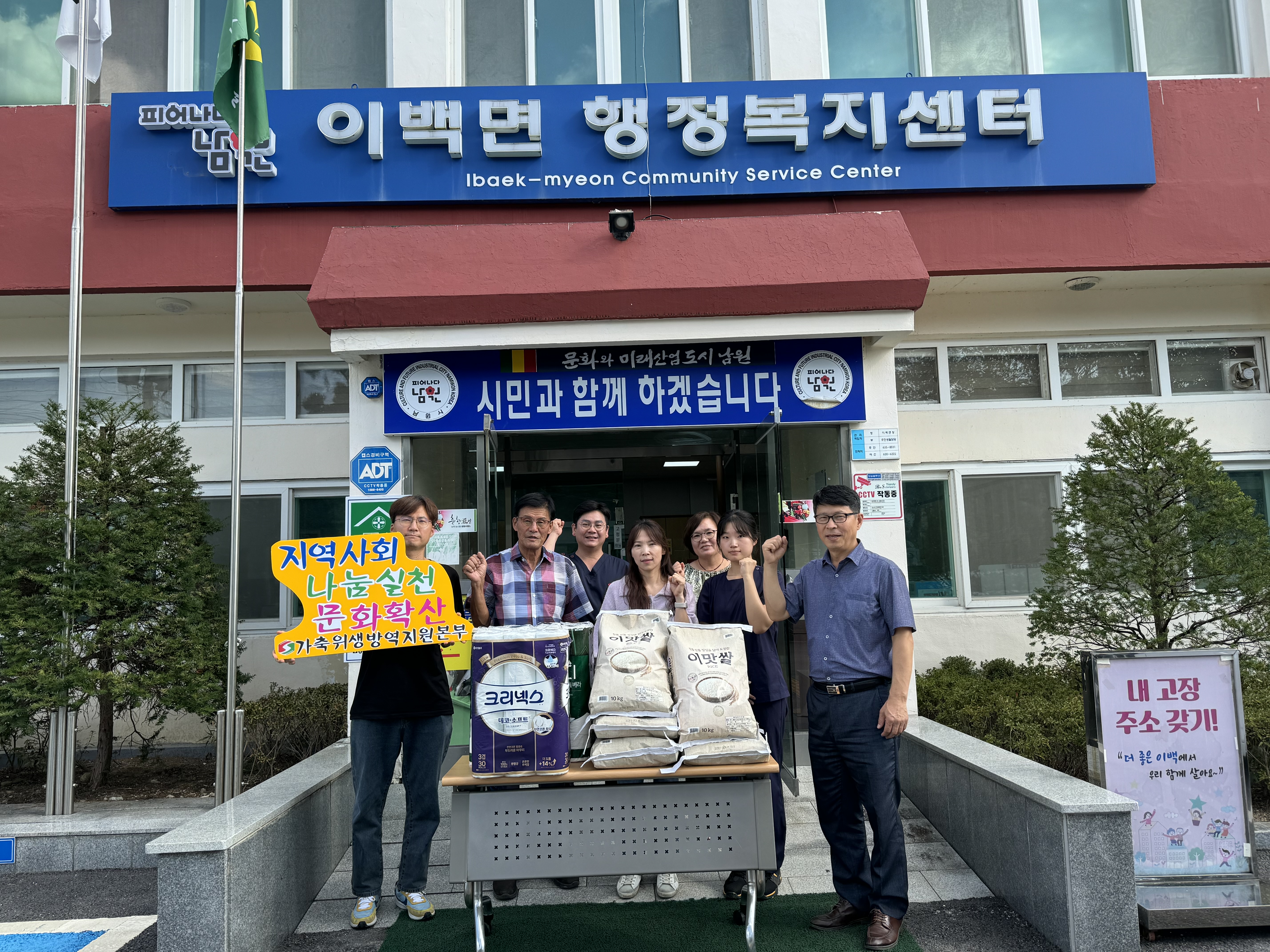 가축위생지역방역본부 전북도본부 남부사무소는 지역사회공헌에 이바지하겠다는 뜻과 함께 지난 6월과 추석명절 등 주기적으로 이백면에 화장지, 쌀, 등 다양한 기부물품을 어려운 이웃에게 전달해 달라고 물품들을 전달했다.