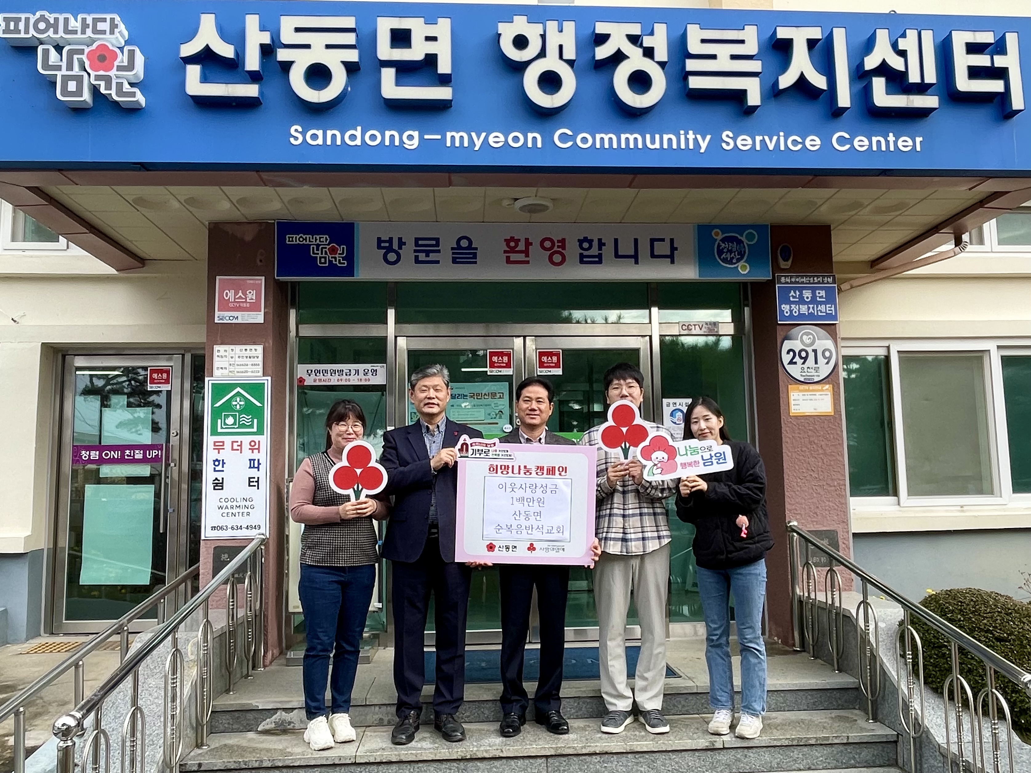 지양근 산동면장은 “경기불황 심화로 기부문화가 점차 위축되고 있는 상황에서 고향의 어려운 이웃들을 위해 기부해주신 순복음반석교회(목사 조진영)께 깊은 감사를 드린다면서 몸과 마음이 움츠러드는 한파 속에 따뜻한 마음을 잘 전달하겠다”고 말했다.