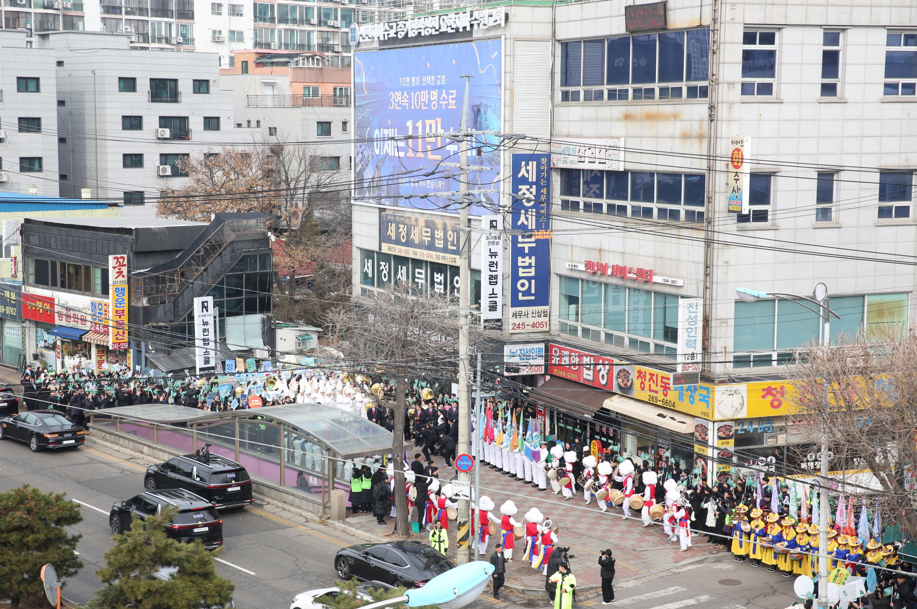 취타대부터, 기수대, 군악대, 사물놀이패 등 다채로운 환영 도열에 교회 인근을 지나가던 시민들이 행렬을 힐끔거리며 쳐다보기도 했다. 도열을 쳐다보던 한 상인은 “크리스마스 연휴인데 가게 앞까지 사람들이 줄을 서고 있는 것이 너무 신기해서 계속 보게 된다”며 “이렇게 환영받으면 누구라도 기쁠 것 같다”고 말했다.