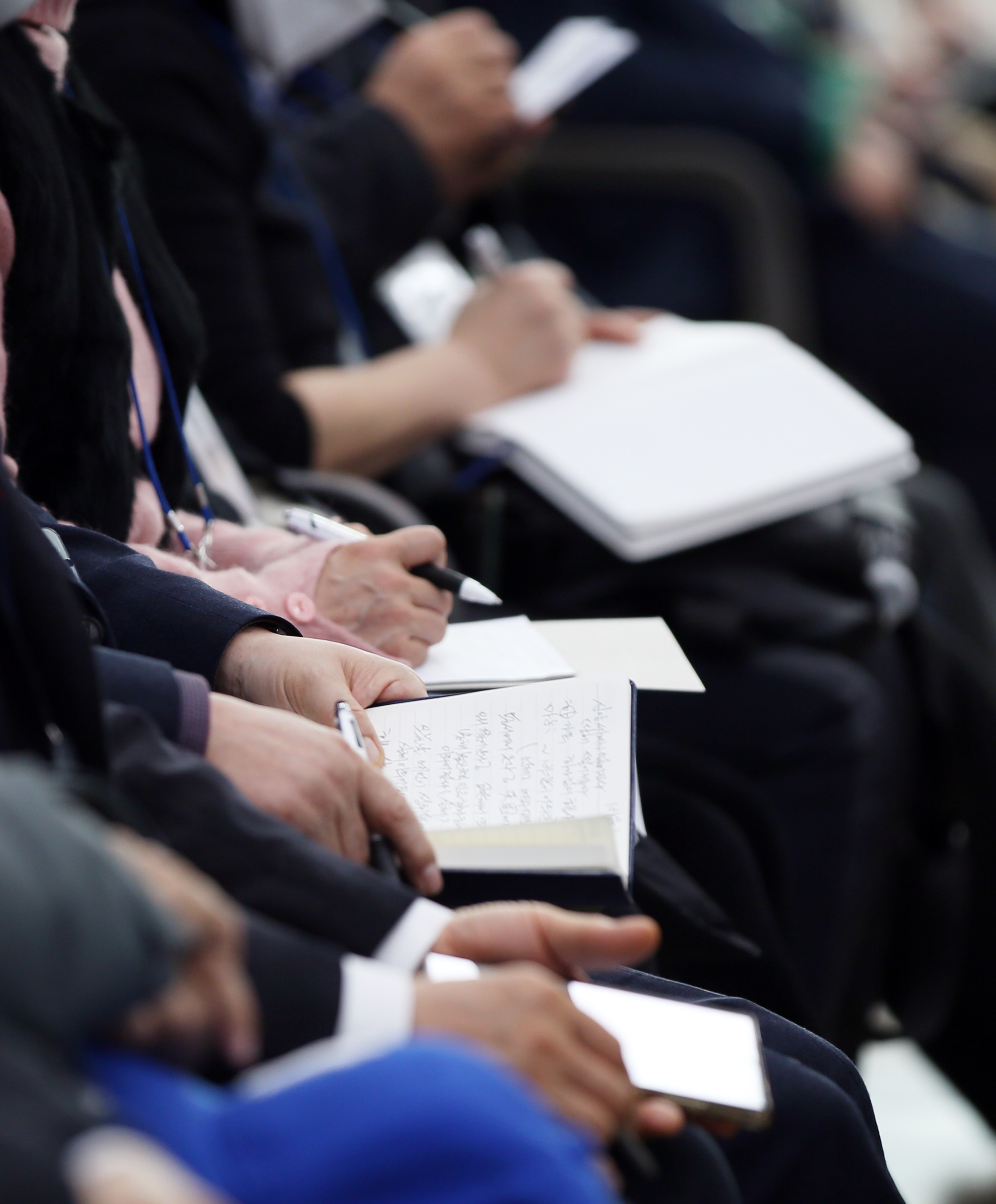 현장에 참석한 목회자들은 이 총회장의 말씀을 필기하며 경청하는 등 높은 집중력을 보였다. |