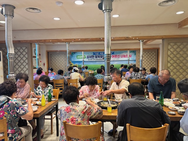 말복맞이 나눔사업은 ‘25년 지역사회보장협의체 특화사업으로 공동모금회에 모금한 지역내 후원금으로 마련했으며, 말복더위를 맞아 건강한 여름나기를 위해 홀로 사시는 어르신을 대상으로 식사를 대접하고 더위에 지치고 건강이 약해진 대상자들에게 심신을 위로할 수 있는 계기가 되었다.