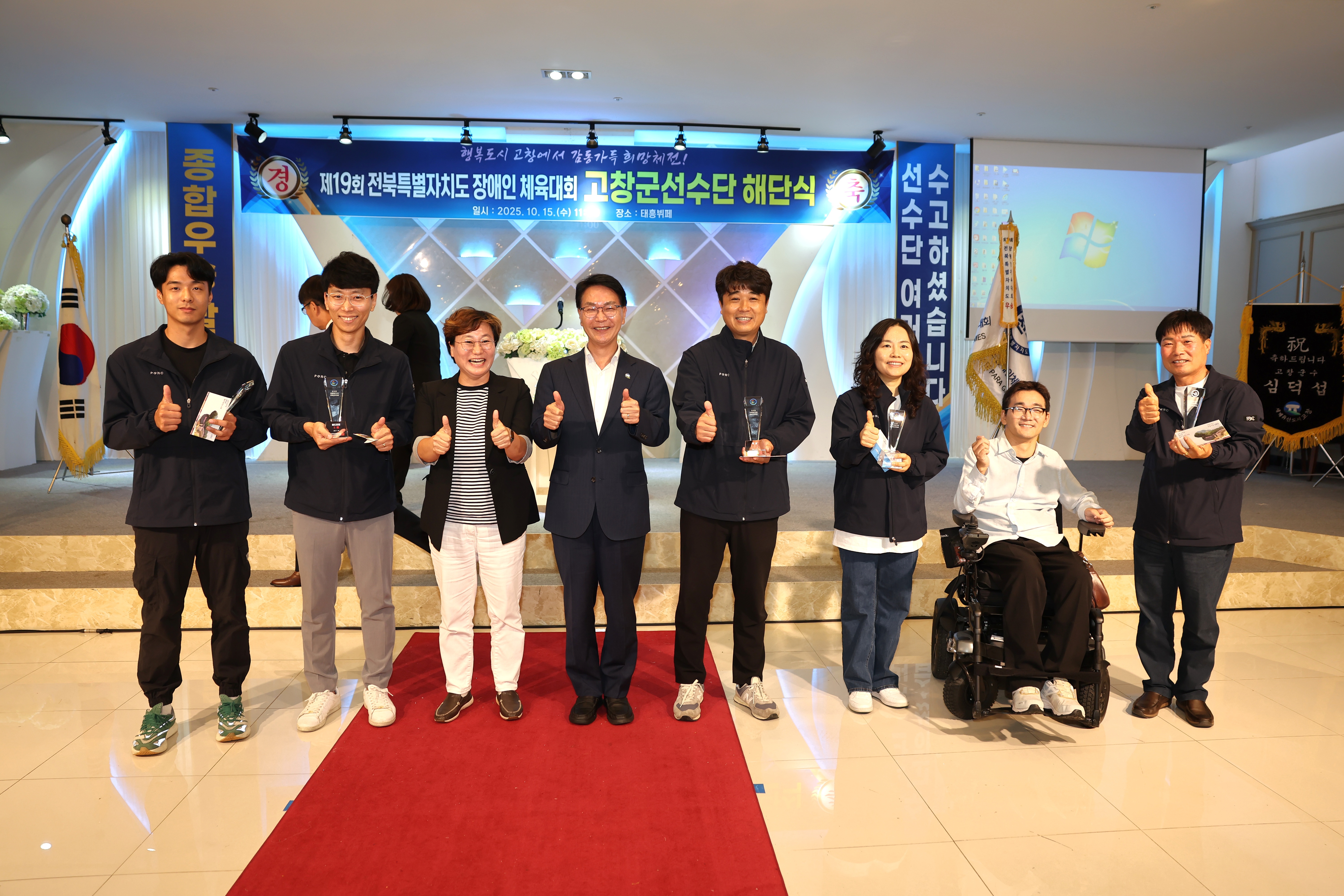 심덕섭 고창군수는 “19년 전북장애인체전 역사상 군부 최초 종합우승을 이뤄내며 고창군의 자긍심을 만방에 알렸다여러분이 보여주신 열정과 도전정신은 단순한 경기 성과를 넘어 장애와 비장애의 벽을 넘어서는 화합과 용기의 상징이었다고 격려했다.