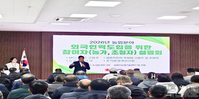 [남원=뉴전북] 남원시(시장 최경식)가 6일 남원시 농업기술센터에서 2026년도 계절근로자 도입 농가 및 결혼이민자 초청자를 436명을 대상으로 계절근로자 입국부터 출국까지 전반적 고용주의 의무와 근로자의 안전 및 인권 보호에 관한 설명회를 개최했다.