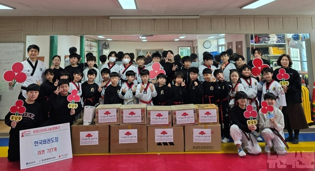작년에 이어 올해도 나눔을 이어간 한국태권도장은 아동·청소년 관원들이 어려운 이웃을 돕기 위해 지난해 12월부터 올해 1월까지 십시일반 정성을 모아 마련했다.
