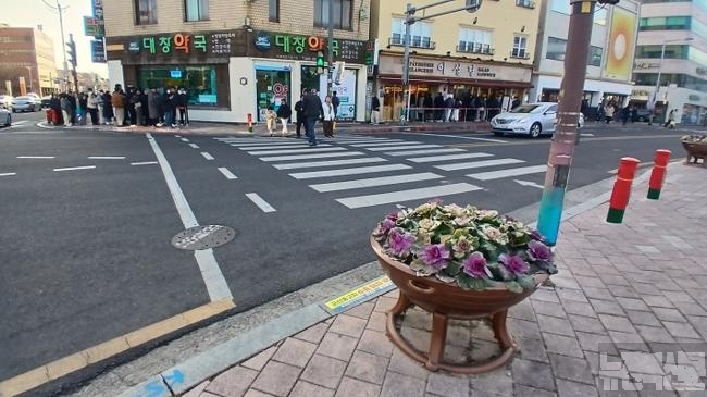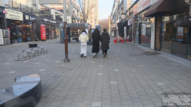 31일 오후, 군산시 조촌동 음식점 거리를 롱패딩 차림의 시민들이 거닐고 있다.