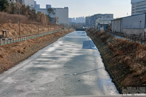 1일 오후, 군산 조촌동 롯데몰 근처 하천이 얼어 있다.