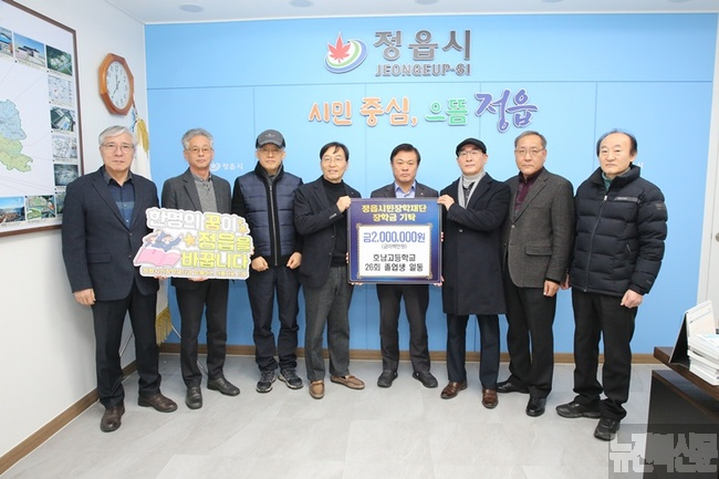 [정읍=뉴전북] 호남고등학교 26회 졸업생들이 졸업 47주년을 맞아 지역 인재 양성과 교육 여건 개선을 위해 사용해 달라며 정읍시민장학재단에 장학금 200만원을 기탁했다.