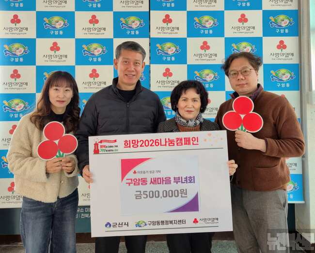 군산시 구암동 새마을부녀회는 23일 구암동에 지역 내 어려운 이웃을 위한 성금 50만 원을 기탁했다.[사회=뉴전북] 군산시 구암동 새마을부녀회(회장 김봉임)는 23일 구암동에 지역 내 어려운 이웃을 위한 성금 50만 원을 기탁하며 따뜻한 나눔을 실천했다.
