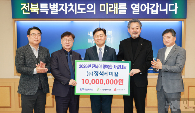 [사회=뉴전북] 전북특별자치도는 23일 ㈜정석케미칼이 불우이웃돕기 성금 1천만 원을 지정 기탁했다고 밝혔다.